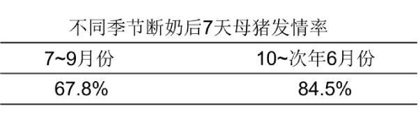1.1 溫度對斷奶7天內母豬發(fā)情率影響見下表(引用資料)。