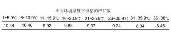 1.2 不同環(huán)境溫度下母豬產(chǎn)仔數(shù)情況見下表。